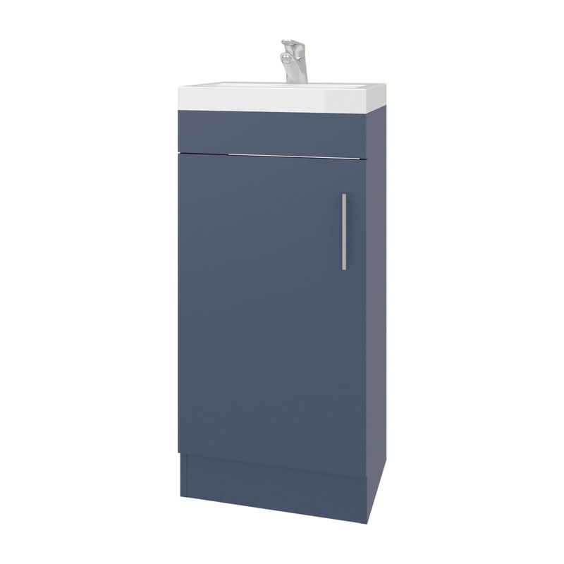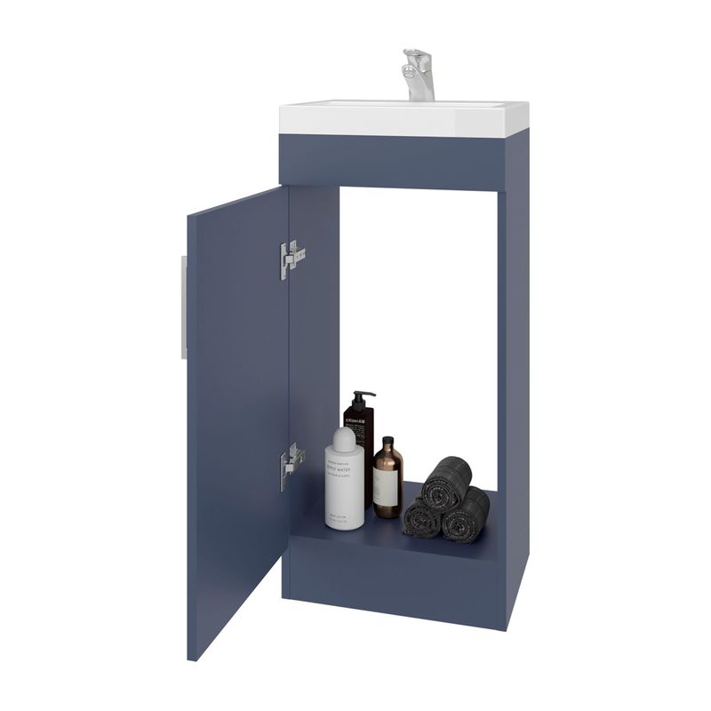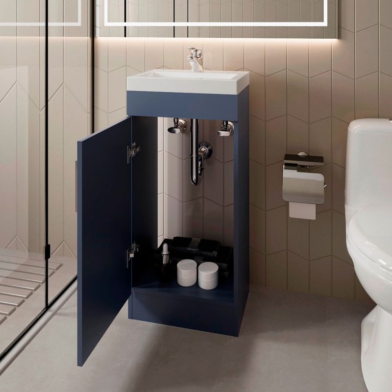 Mueble para lavamanos con puerta abatible, amplios espacio para almacenamiento, incluye lavamanos en resina y griferia con medidas de: ALTO 88 ANCHO 40 FONDO 33