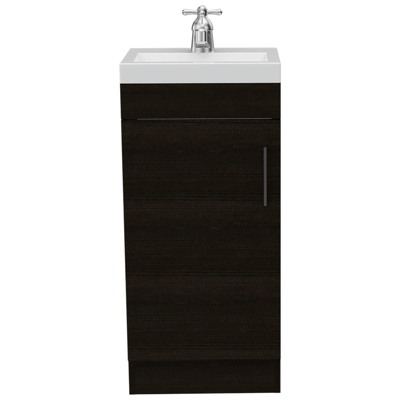 Mueble para lavamanos con puerta abatible, amplios espacio para almacenamiento, incluye lavamanos en resina y griferia con medidas de: ANCHO 40 ALTO 88 PROFUNDO 33
