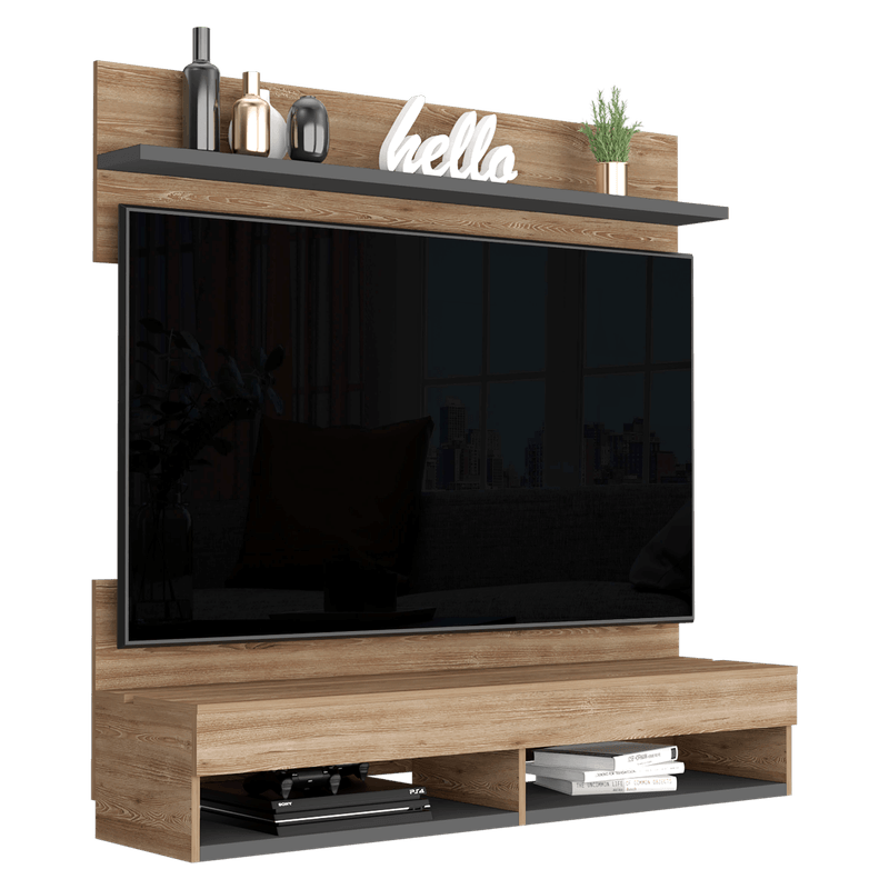 Panel para TV de 60'' maximo, con diseño moderno, y multiples entrepaños y superficies para ubicar objetos con medidas de: ANCHO 137,7 ALTO 134,6 PROFUNDO 35,2