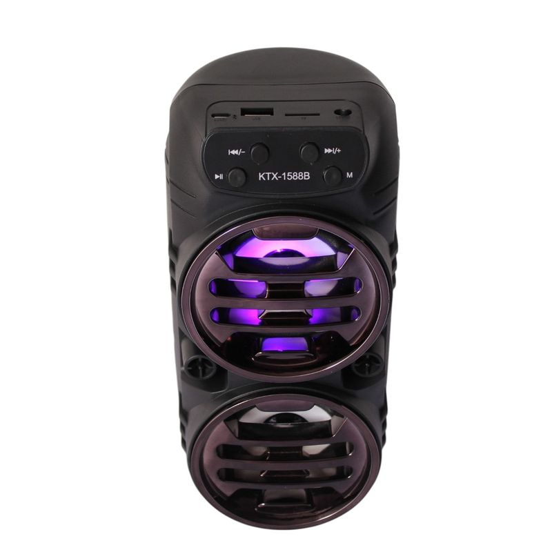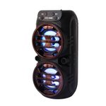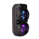 Descubre la potencia y el estilo con este parlante portátil con luces LED integrado. Diseñado para ofrecer un sonido nítido y envolvente, este parlante es ideal para animar cualquier ambiente, ya sea en casa, reuniones con amigos o fiestas al aire libre. Su conectividad Bluetooth te permite reproducir música sin cables desde tu celular o cualquier dispositivo compatible, mientras que las luces LED crean un efecto visual cautivador que se adapta al ritmo de la música.