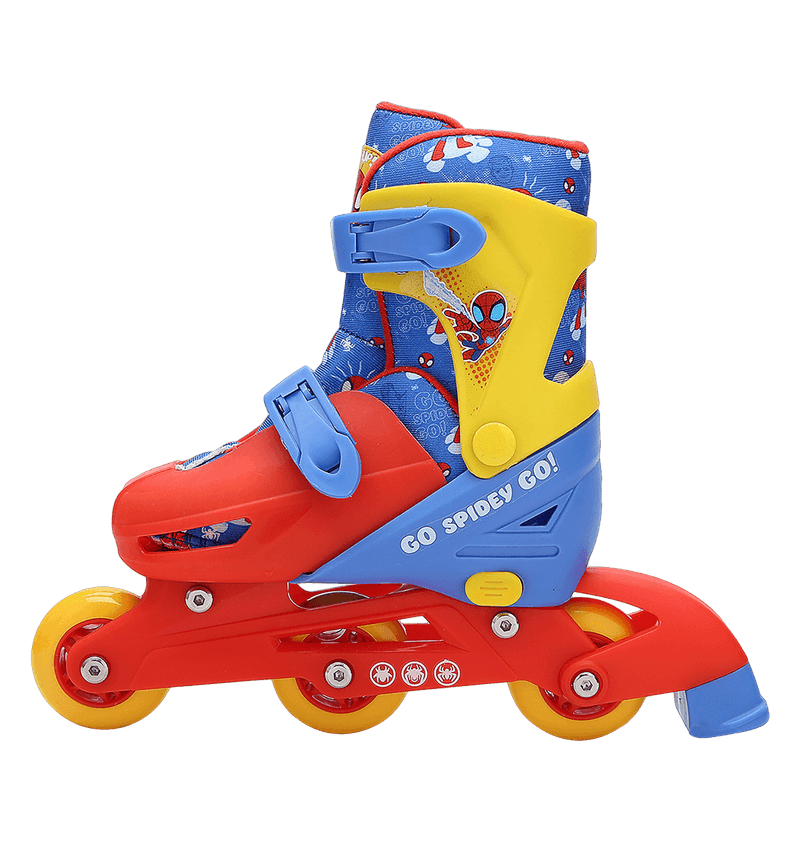 Patines 2 en 1 Spidey Talla SS (27-30), excelentes para que los niños aprendan a patinar, sus ruedas funcionan en dos posiciones: dos llantas en la parte trasera y una adelante si es principiante o en línea si cuenta con más experiencia. Especiales para la coordinación, el equilibrio y la concentración mientras el niño se divierte. En colores y motivos de sus personajes favoritos, para que se inicien en el deporte de forma divertida.