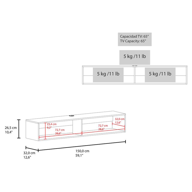 Rack de Tv moderno, espacio para objetos decorativos, de audio y video, con capacidad para televisor hasta de 70 pulgadas, patas metalicas, de facil instalacion con medidas de: