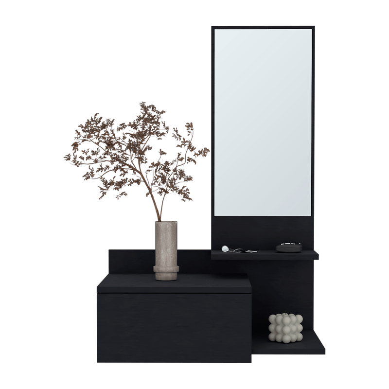 Recibidor que incluye espejo, compartimiento para almacenar objetos, repisa y superficies para ubicar objetos con medidas de: ALTO 91,95 ANCHO 60,1 FONDO 35