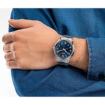 MTP-V005D-2B4 es un reloj elegante y versátil que combina el estilo clásico con un diseño moderno. Su esfera azul metálica con números arábigos blancos resalta sobre la caja y correa de acero inoxidable, ofreciendo un look sofisticado pero ideal para el uso diario.