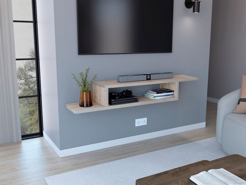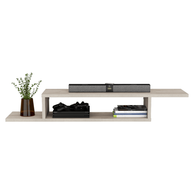 Repisa para tv con espacio para ubicar equipos de audio y video, espacio modular, amplios espacios para ubicar objetos decorativos con medidas de: ALTO 22,9 ANCHO 135-170 FONDO 29,9