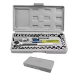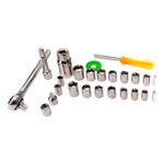 Lleva contigo la solución ideal para reparaciones en el hogar, vehículo o trabajo con este completo set de dados y herramientas manuales. Diseñado para brindar practicidad y eficiencia, incluye múltiples medidas de dados, llave de carraca, extensor, puntas y accesorios organizados en un estuche compacto y resistente. Ideal tanto para uso profesional como doméstico, este kit te permite realizar ajustes y reparaciones con precisión y comodidad en cualquier momento.