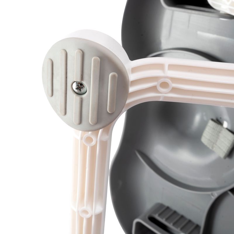 Cuenta con una bandeja frontal con portavasos integrado, ideal para las comidas y meriendas del bebé, además de ser removible para una limpieza rápida y sencilla. Su altura ajustable en 4 posiciones permite adaptarla fácilmente a distintas mesas, garantizando comodidad en cada etapa.