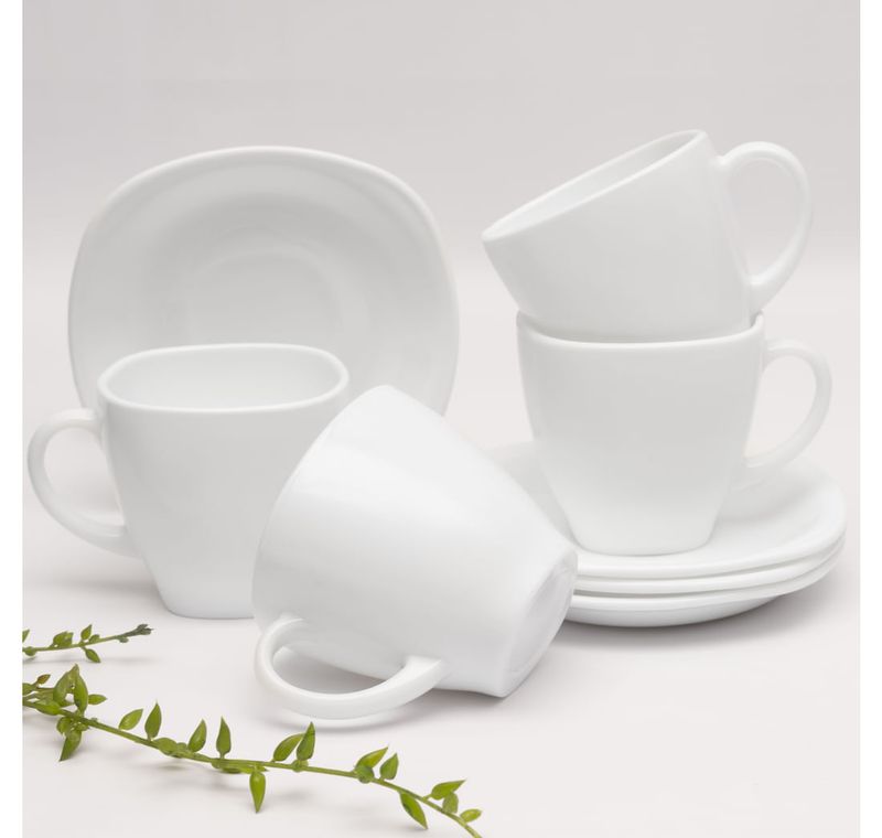 Set de pocillos de 8 piezas de Essenza, fabricados en Opal 100%; el opal es un material de vidrio translucido que además de darle una aparencia más delicada y fina tiene una textura lisa sin porosidades lo que la hace mucho más higiénica y con menos posibilidad de rayarse en el uso, garantiza un alto rendimiento al calor, mayor resistencia y durabilidad.