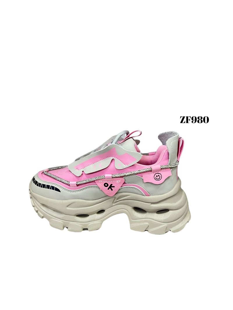 Tenis grises detalles rosa apliques