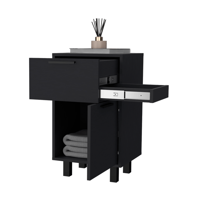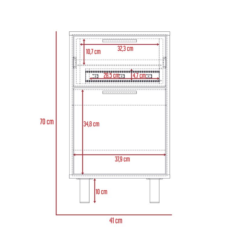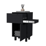 Velador con espacio interior para Almacenar objetos, una puerta abatible y un cajon secrero, diseño moderno con medidas de: ALTO 70 ANCHO 41 FONDO 36,8